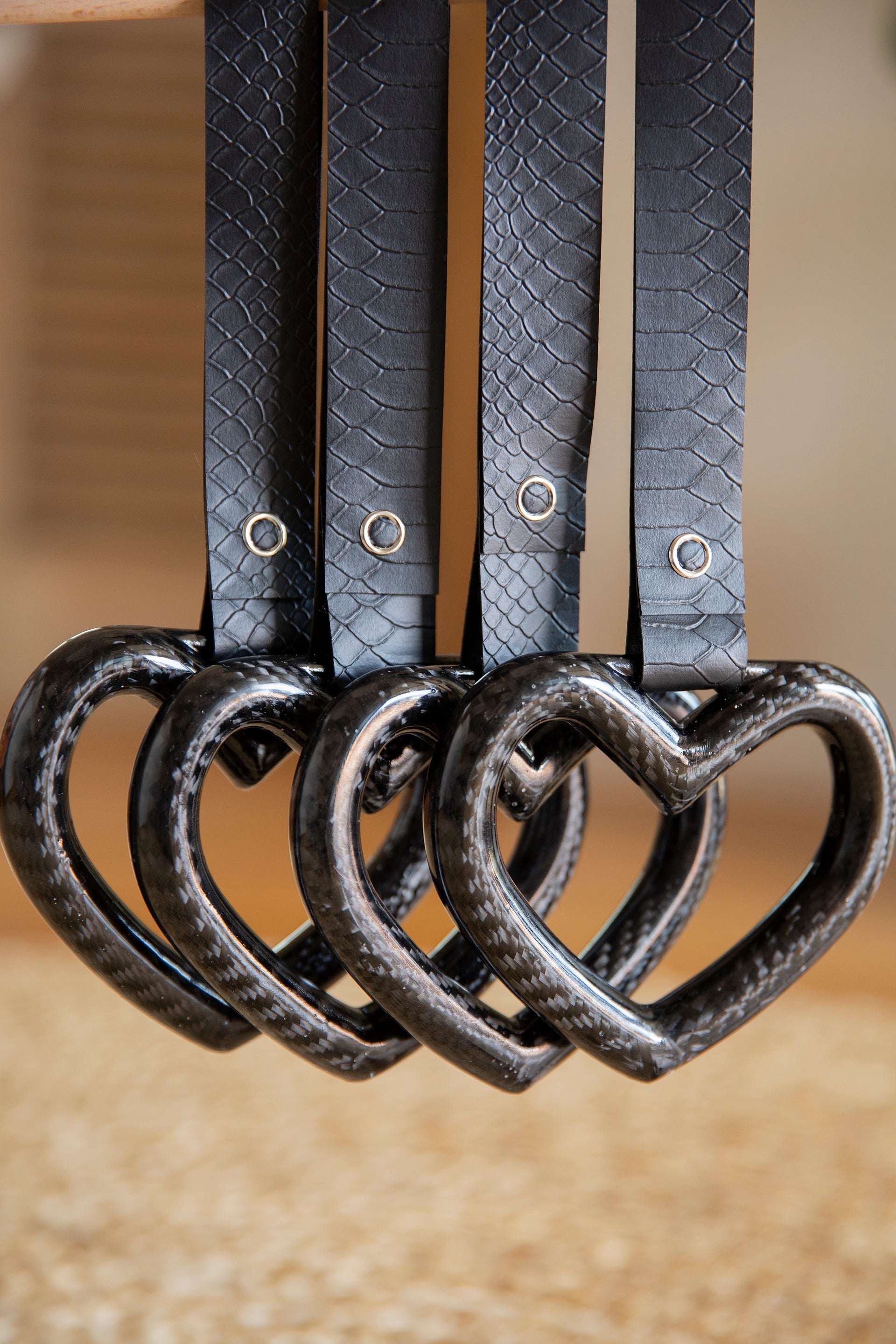 A genuine carbon fibre tsurikawa. Comes with a woven fabric fivedimes strap.